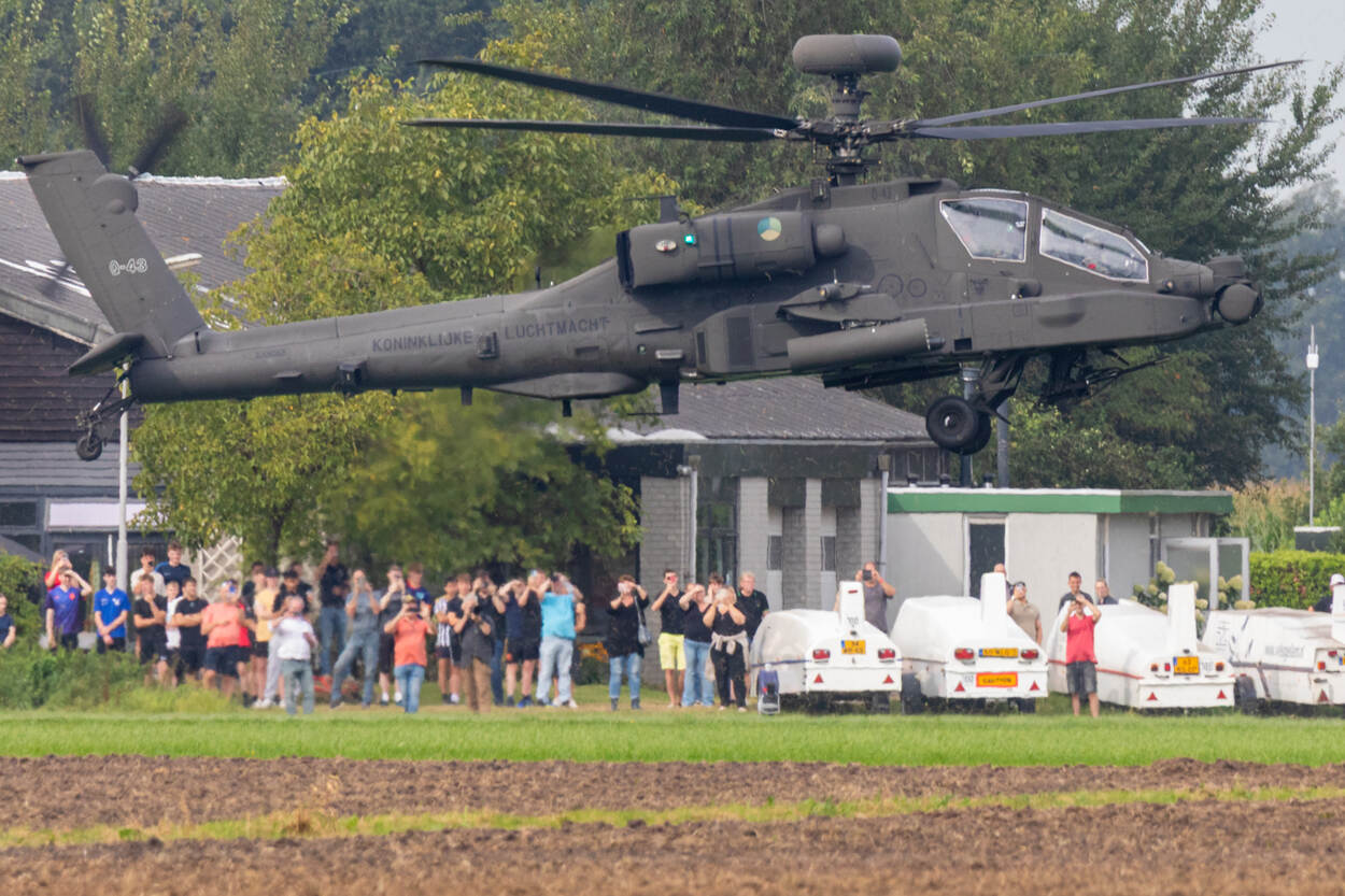 Een Apache helikopter hangt in de lucht boven het veld van Salland.