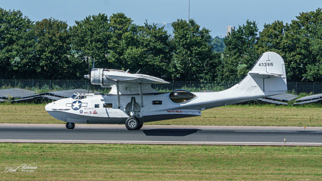 Zo’n toestel, volledige naam Consolidated PBY-5A, was mede daarom te zien en te horen tijdens de Nationale Herdenking op 15 augustus bij het Indiëmonument in Den Haag. “Het stichtingsbestuur Nationale Herdenking 15 Augustus wist het tachtig jaar oude toestel te charteren om met een fly-past de herdenking luister bij te zetten. Het toestel landt hier op Rotterdam-The Hague Airport.”