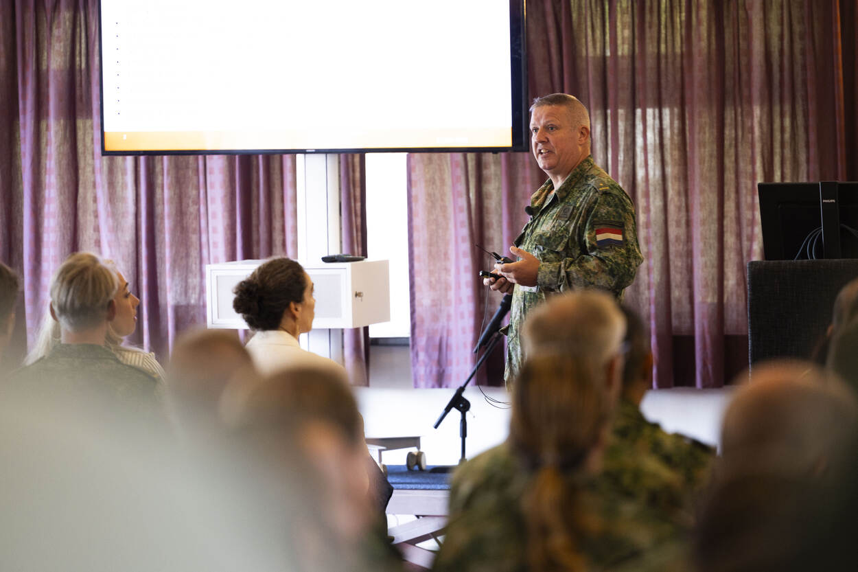Enkele uren eerder. Het duo bevindt zich in een bomvolle zaal op de Frederikkazerne, een paar kilometer verderop in Den Haag. Zo’n tweehonderd toehoorders ontvangen daar de bevelsuitgifte voor het ceremonieel eerbetoon op Prinsjesdag. Grotendeels personen in militaire uniformen, maar ook het politiepak is her en der zichtbaar. Alle noodzakelijke informatie passeert de revue: van locaties tot tijden en benodigdheden.