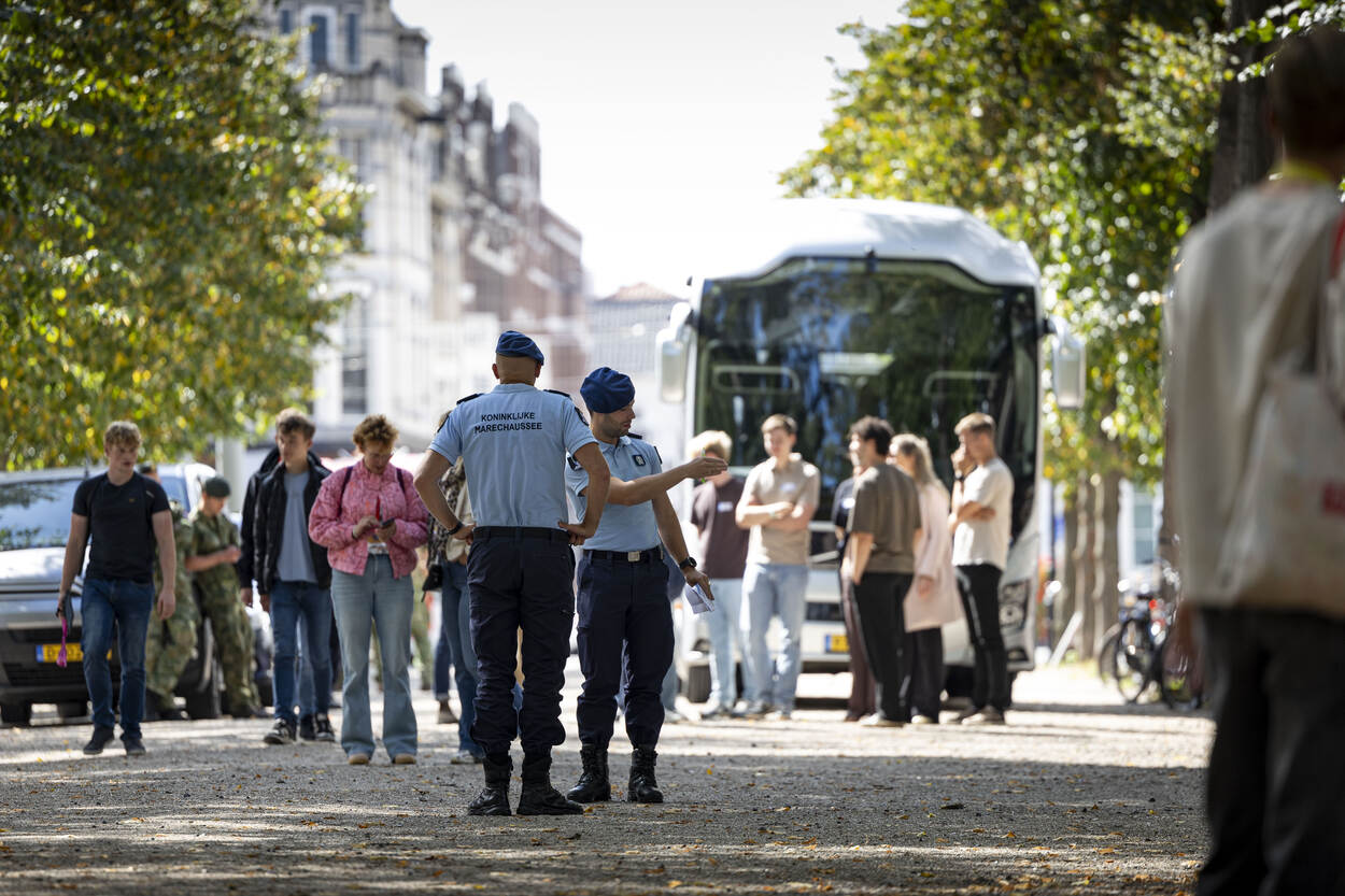Tweede luitenant Stan en opperwachtmeester Youri stappen uit de bus, wandelen een stukje en kijken om zich heen. Samen met enkele tientallen collega’s staan ze midden in Den Haag, op het Lange Voorhout. De verkleurde bladeren op de grond verraden dat de meteorologische herfst inmiddels is ingezet. Op de brede laan wemelt het deze dag van scholieren en toeristen, maar over enkele dagen treft het duo een heel ander decor. Dan is dit stukje van de stad onderdeel van de route die de koninklijke stoet aflegt tussen Paleis Noordeinde en de Koninklijke Schouwburg.