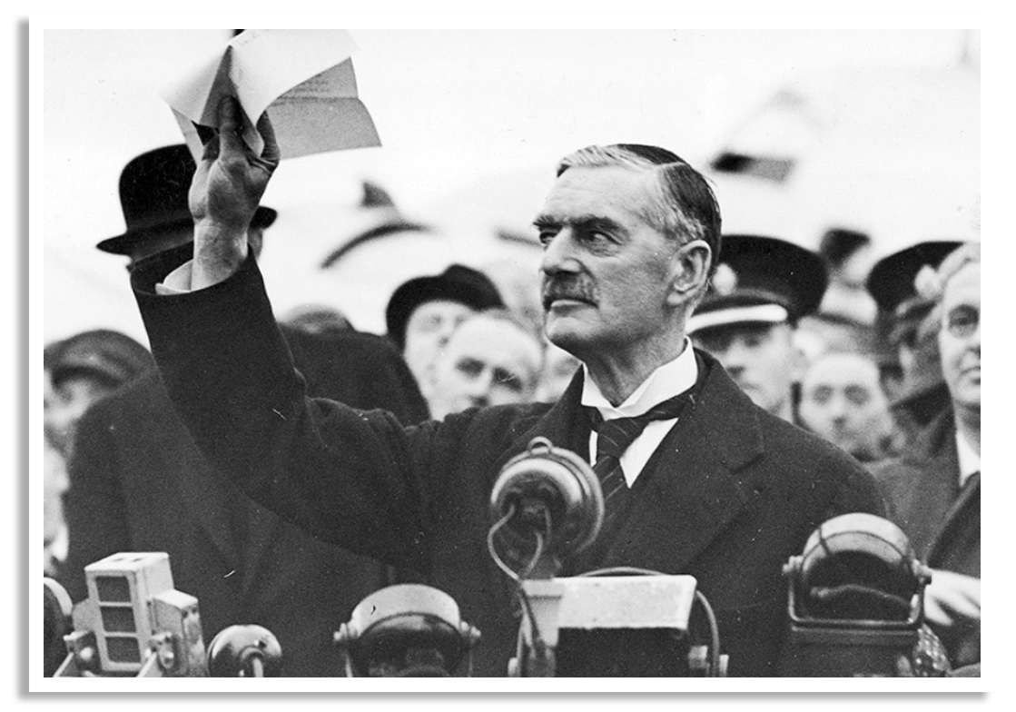 In Londen is Neville Chamberlain, de Britse premier, inderdaad vastbesloten om een tweede wereldoorlog in Europa te voorkomen. Zijn halfbroer, Austin, heeft met het Verdrag van Locarno uit 1926 al de Nobelprijs voor de Vrede gekregen. Wellicht ziet Neville zichzelf nu als kandidaat. Hij zet in op diplomatie en onderhandelingen en het idee dat redelijkheid uiteindelijk zal zegevieren.