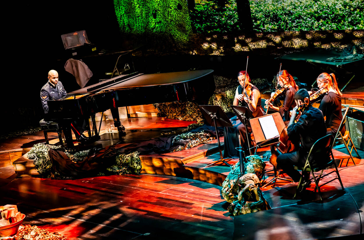 Een droom die uitkomt: korporaal Nordin Maouli op de piano in de Doelen in Rotterdam.