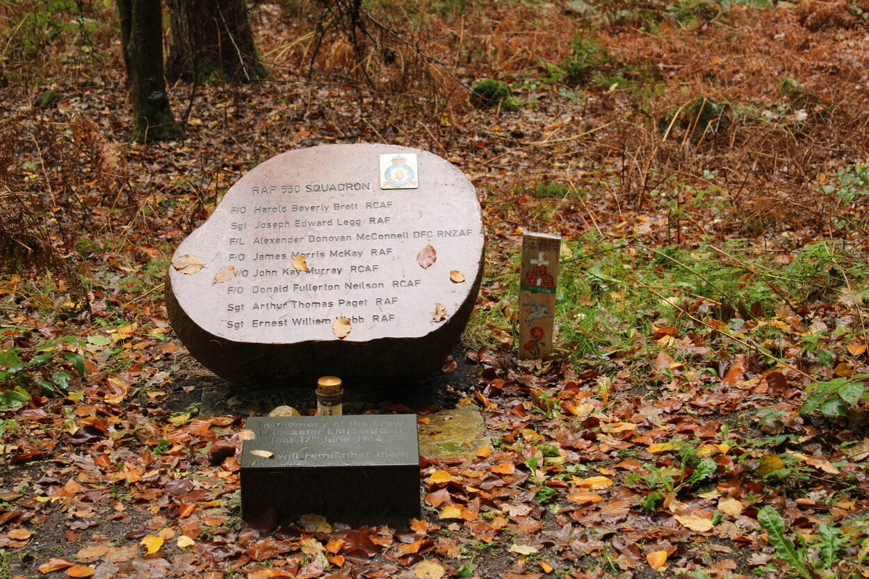Ter aanvulling: de stoffelijke resten van drie bemanningsleden liggen begraven op het Brits ereveld in Leusden. De vijf anderen zijn nog steeds vermist. Zij worden herdacht op het Air Forces Memorial Runnymede in de buurt van Egham in Engeland.