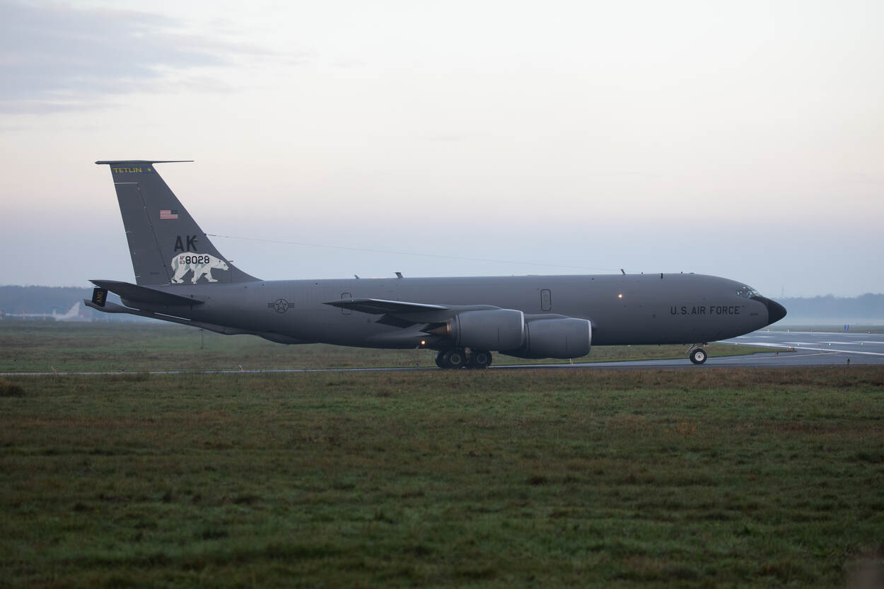 De Air National Guard van de US Air Force roteert daar de KC-135 squadrons voor air-to-air refueling-oefeningen laat hij LENS! weten. “Deze keer was het de beurt aan 168th Air Refueling Squadron, 168th Air Refueling Wing van Eielson Air Force Base nabij Fairbanks, Alaska. Een aantal van die tankers is voorzien van een ijsbeer op de staart en het woord Tetlin. “Dat is een dorp in de buurt van de grens met Canada”, leest Manolito ons deze les topografie.