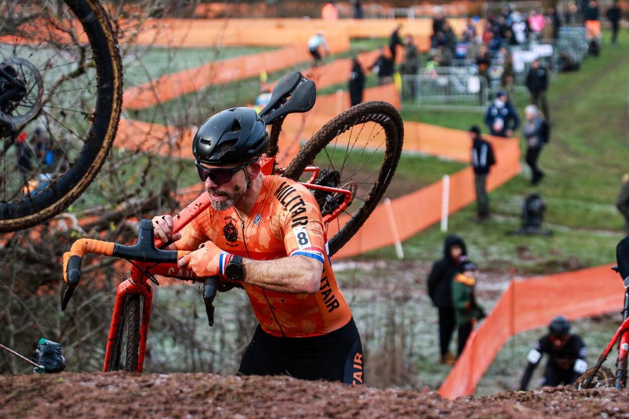 Nee, hij heet geen Jimmy, maar is gelijk het nummer van Boudewijn de Groot ‘de eenzame fietser’. En niet zomaar een fietser, want deze klepper is op deze foto onderweg naar de wereldtitel militair. (Kapitein) Luuk Nissen is de naam. Hij wist afgelopen zaterdag in Diekirch (Luxemburg) de lokale en Belgische concurrentie bij de masters naar huis te rijden op de cyclocross. “Het was een enorm zwaar en technisch parcours”, meldt de winnaar, die vlak na de start bijna kansloos leek. “Ik ging hard onderuit door toedoen van een van de deelnemers.”