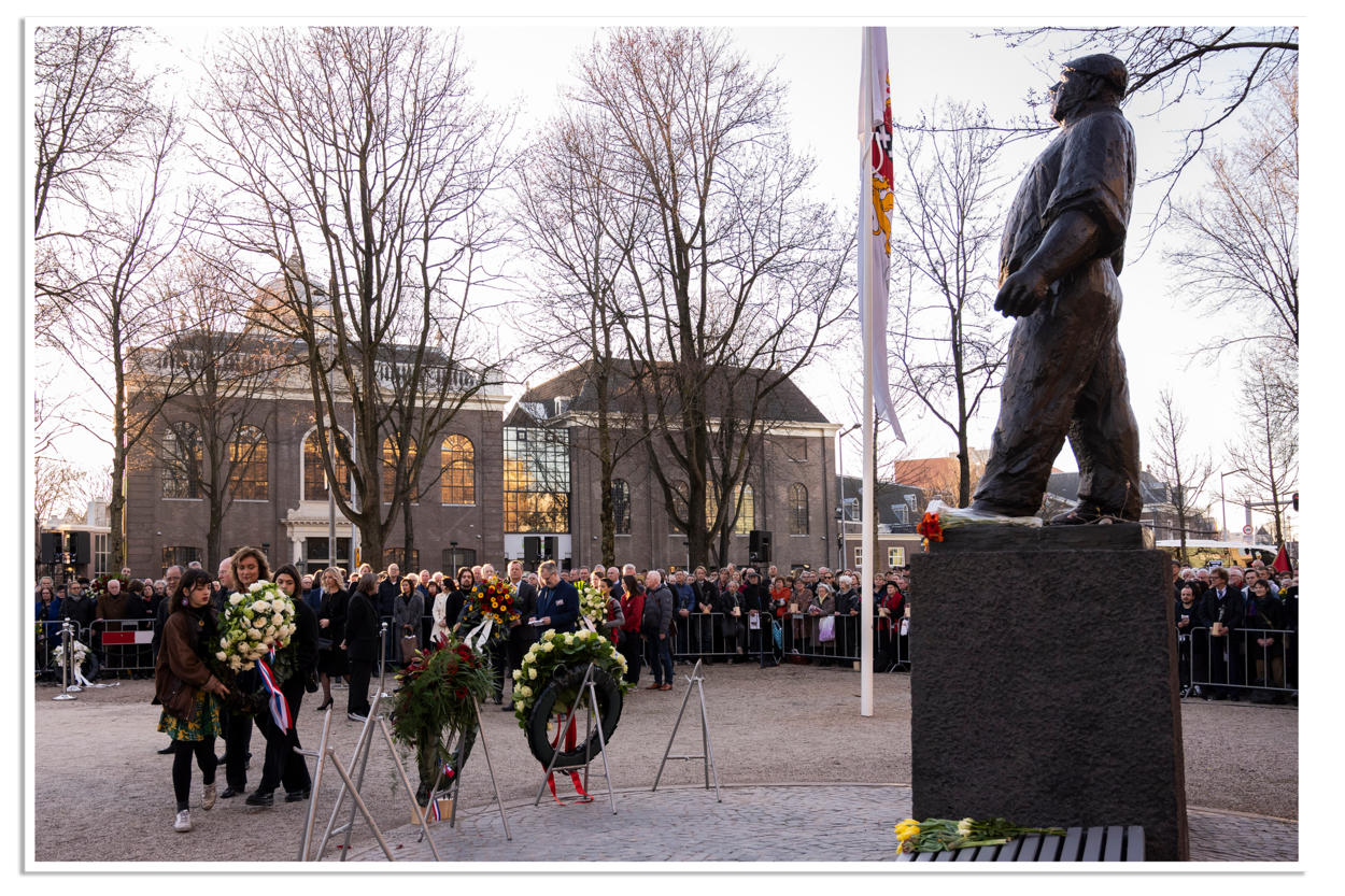 In het hart van de hoofdstad staat het standbeeld in brons, ter nagedachtenis aan de Februaristaking van 1941. Op 25 februari dat jaar leggen duizenden Amsterdammers het werk neer uit protest tegen de zogenoemde razzia’s (Arabisch-Frans woord voor ‘aanval’). Op 22 en 23 februari pakken de Duitsers met veel geweld 25 Joodse mannen op. Dat schiet onder anderen vakbondsleider, communist en verzetsman Dirk van Nimwegen in het verkeerde keelgat. Hij roept de havenarbeiders op de volgende dag het werk uit protest neer te leggen.
