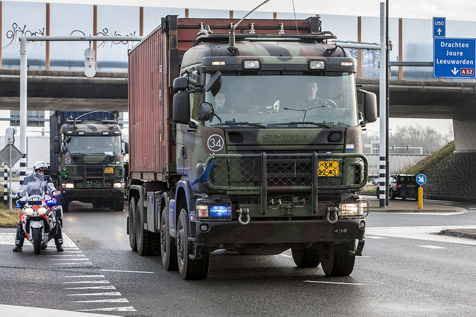 Motorrijders van de brigade Krijgsmacht en Operationele Ondersteuning van het District Landelijke en Buitenlandse Eenheden hebben de colonne militaire voertuigen voor de oefening Dutch Bizon begeleid. Ruim 1.300 militairen van 43 Gemechaniseerde Brigade uit Havelte oefenden tot 26 februari in en rond Harlingen en Drachten.