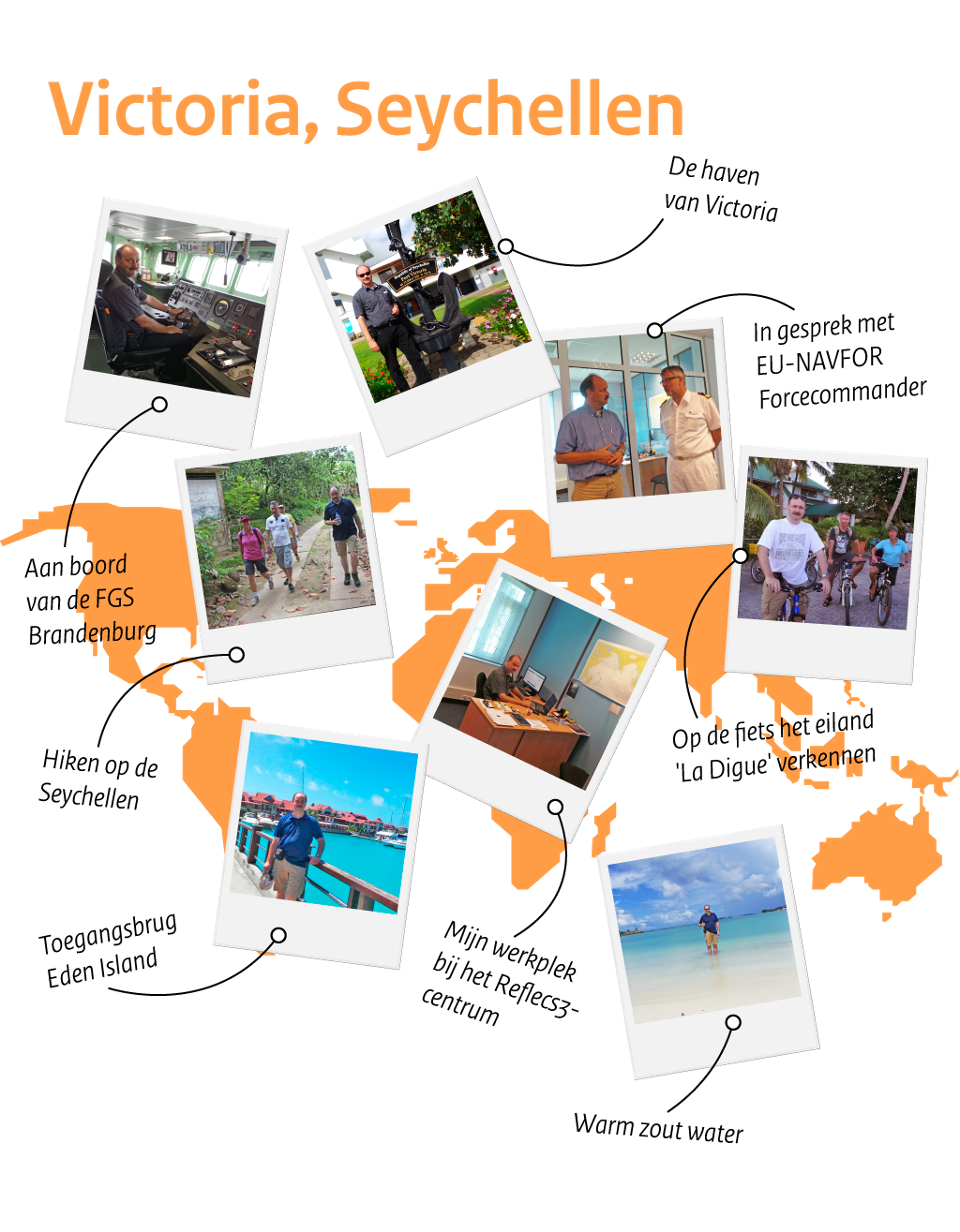 Reflecs3 is gehuisvest op een voormalige kustwachtbasis in de hoofdstad Victoria. Ik verleen analysesteun aan een joint investigation team (JIT) van de Seychelles Piracy Intelligence Cell (SeyPIC) en het Nigeriaanse Criminal Investigation Department (CID). Ik ben daarnaast bezig met het opzetten van een intelligence uitwisselprogramma met de lokale gevangenis waar onder andere Somalische piraten gevangen zitten. Binnen Reflecs3 zijn naast de KMar ook SeyPIC, EU-NAVFOR, UNODC en Interpol vertegenwoordigd.