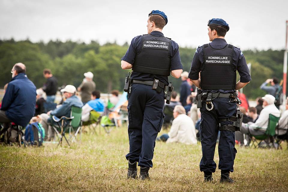 De grootste uitdaging tijdens de Luchtmachtdagen was - naast het handhaven van de orde op het luchtmachtterrein - het beheersbaar houden van de bezoekersstromen, zowel op het terrein als daarbuiten. “Op het luchtmachtterrein is de KMar verantwoordelijk voor een veilig en feestelijk verloop van de dagen, daarbuiten de politie. Omdat de politie geen SGBO had ingericht, was een van onze collega’s wel vertegenwoordigd bij het regelen van de verkeersstromen door de politie. Zo pakten we de verkeersstromen buiten het terrein samen op met de politie. Dat is uniek.”