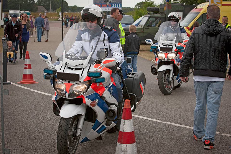 Ook de motorrijders van de KMar stonden paraat. Onder andere voor het begeleiden van VIP’s.