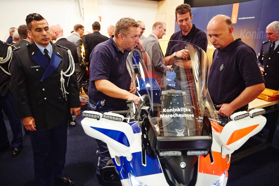 Na de contractondertekening bewonderden de aanwezigen de nieuwe KMar-motorfiets.