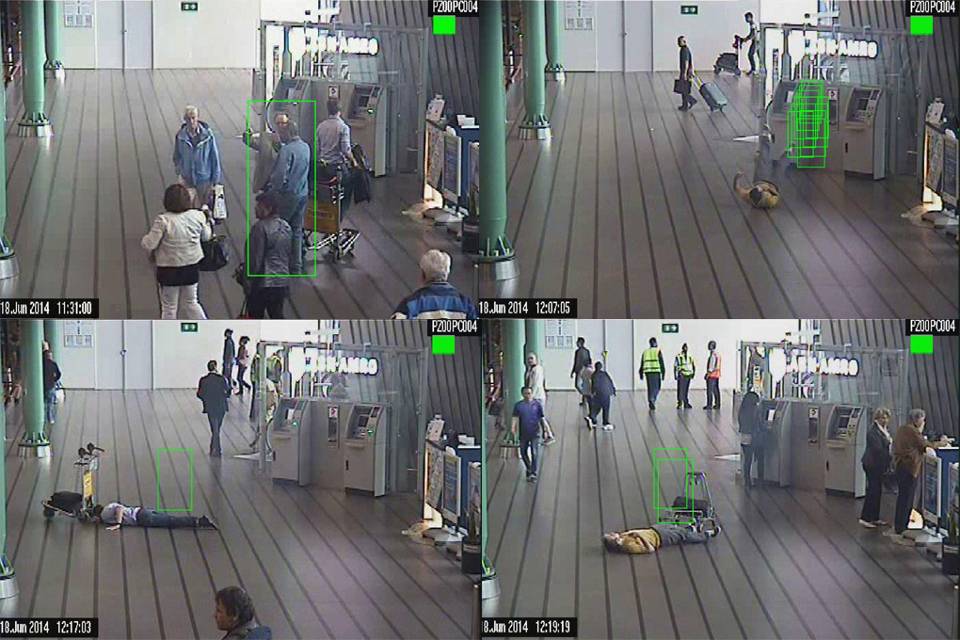 Maar hoe leer je een domme camera afwijkend gedrag herkennen? En dan ook nog op een drukke locatie als Schiphol, waar duizenden mensen zich dagelijks kris kras over de luchthaven verplaatsen. Weijers: "We zijn de software nu aan het voeden met allerlei camerabeelden. Beelden uit de praktijk, maar ook van op de luchthaven nagespeelde incidenten. Daaruit filteren we onderdelen, die afwijkend, opvallend en onderscheidend zijn voor de situatie die wij willen herkennen, zogenoemde 'bouwstenen'. Bijvoorbeeld een onwelwording. Logisch dat 1 van de bouwstenen is wanneer iemand ineens op de grond ligt. Maar 1 bouwsteen herkennen is onvoldoende. Was het niet een spelend kind en blijft het slachtoffer roerloos liggen? Voor betrouwbare detectie moet er meer zijn."