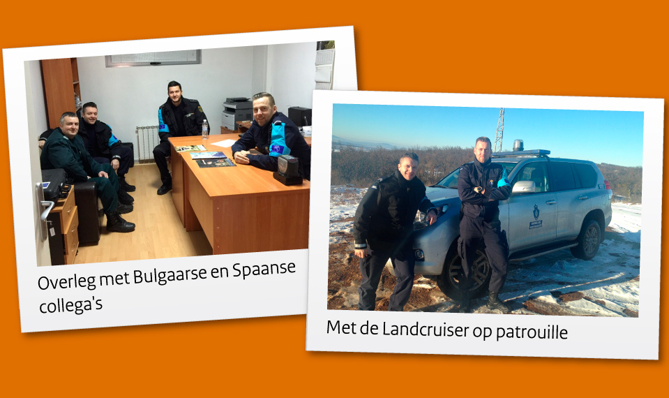 "Wij zijn sinds 6 januari een maand geplaatst in Bulgarije als border surveillance officer. We maken hier deel uit van Joint Operation Poseidon Land, een operatie van het Europees Agentschap Frontex. Alle EU-lidstaten maken deel uit van de joint operation. Op dit moment zijn onder andere border surveillance officers uit Letland, Kroatië, Portugal, Spanje en Roemenië aanwezig.