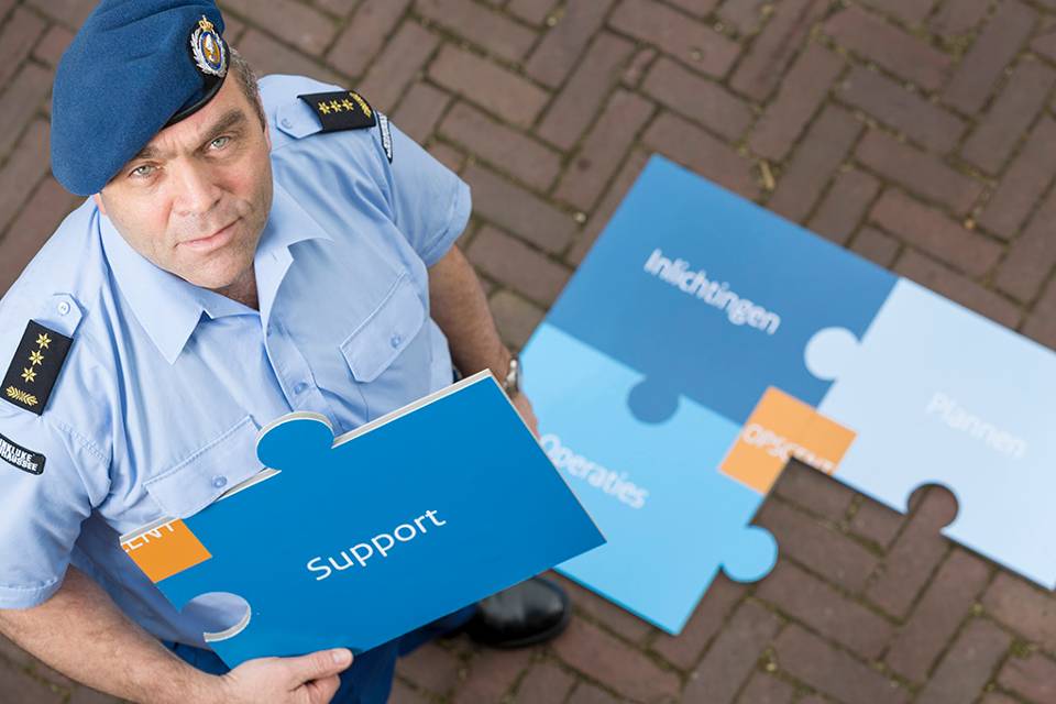 Proceseigenaar Support kolonel John van Veenhuizen. Support is 1 van de 4 puzzelstukjes waaruit het Landelijk Tactisch Commando is opgebouwd.