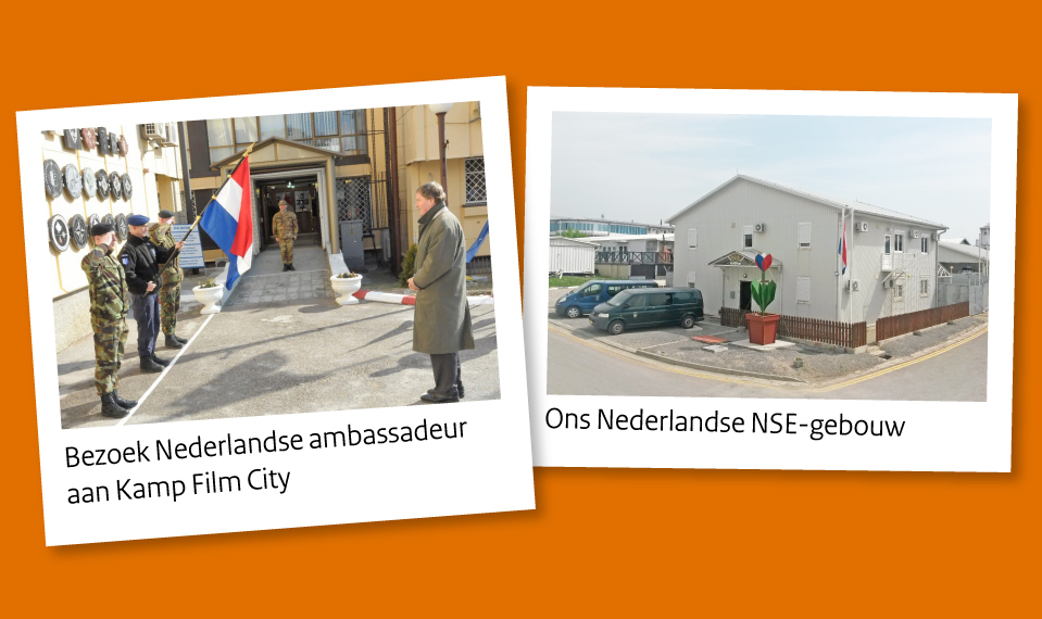 "Ik ben als commandant van het National Support Element (NSE) vanaf januari 2015 voor een periode van 6 maanden geplaatst in het Kosovaarse Pristina. De NSE is het onderdeel dat sinds 2009 de logistieke ondersteuning voor KFOR (Kosovo Force) en EULEX (European Rule of Law Mission in Kosovo) verzorgt. 1 KMar-collega en ik ondersteunen vanaf Kamp Film City collega's van de Koninklijke Marechaussee, de KFOR-militairen, de Nederlandse politie, ambtenaren van Buitenlandse Zaken en het ministerie van Veiligheid en Justitie. Allemaal partijen die in Kosovo werken om de rechtstaat opnieuw vorm te geven in opdracht van de Europese Unie.