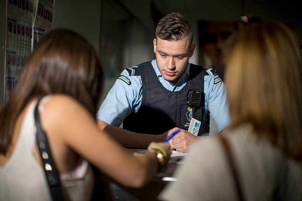 Schiphol is een kleine stad waar op ieder gegeven moment zo'n 60.000 mensen werken. Jaarlijks wordt een reizigersstroom van zo'n 50 miljoen personen verwerkt. In die stad gebeuren dingen, net als in iedere andere gemeente. Op de KMar-post vragen mensen hulp omdat hun zakken zijn gerold en zij hun papieren kwijt zijn. Andere problemen zijn: verloren bagage, winkeldiefstal en opstootjes. Ook al zijn juli en augustus de drukste maanden, het werk blijft ongeveer gelijk.