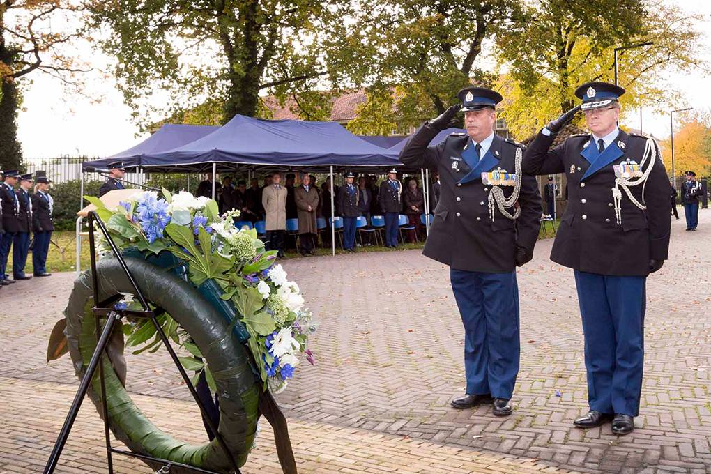 Benieuwd wie er allemaal aanwezig zijn bij de herdenking bij het Marechausseemonument? Klik op de oranje rondjes voor een uitleg.
