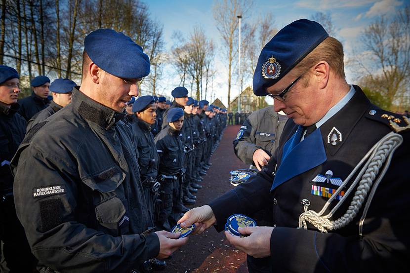 Toen de bijstandsorganisatie van de KMar in 2014 werd omgevormd tot 1 organisatie nam luitenant-generaal Hans Leijtens een bijzonder appel af. Hij reikte daarbij een speciale badge uit.