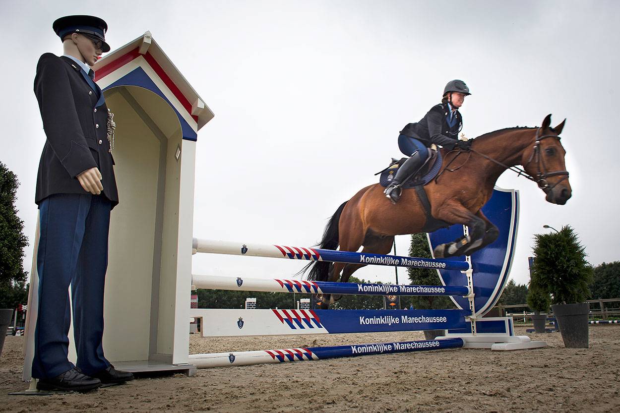 Geen eigen paarden, wel een eigen hindernis. Het was oud-commandant Koninklijke Marechaussee Hans Leijtens die tijdens zijn laatste Prinsjesdag in 2015 een KMar-hindernis cadeau deed aan de Bereden Brigade KMar. Jelle Rutgers ontwierp en bouwde de houten hindernis, die geschikt is voor alle (inter)nationale wedstrijden. In Maassluis werd de zogenoemde asymmetrische KMar-hindernis in gebruik genomen. Rutgers: "Ik ben als burger dankbaar voor het werk dat de Marechaussee verricht. Ik ben trots dat ik dit heb mogen maken. Die dankbaarheid en trots heb ik in deze hindernis gestopt…"