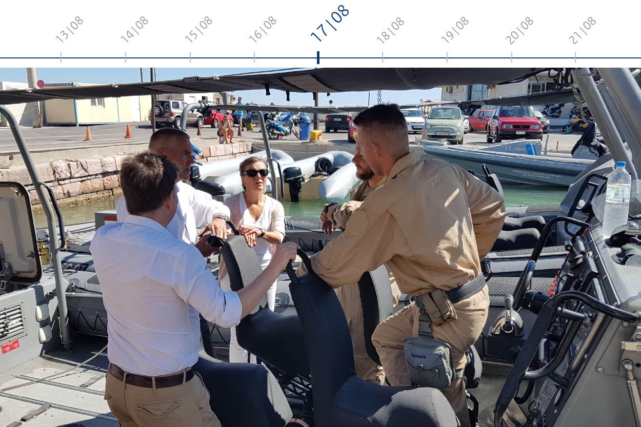 Commandant KMar luitenant-generaal Harry van den Brink is samen met onder andere Petra Lugtenburg (hoofddirecteur Financiën en Control) te gast bij het Border Security Team (BST) op het Griekse eiland Chios. Het BST bestaat uit circa 35 collega's van de KMar, Marine, CDC, DJI, IND, Nationale Politie en de DT&V. Zij ondersteunen onder de vlag van Frontex sinds begin 2016 de Griekse autoriteiten bij het bewaken van de Europese grens. Op het eiland Lesbos is sinds april ook een BST actief.