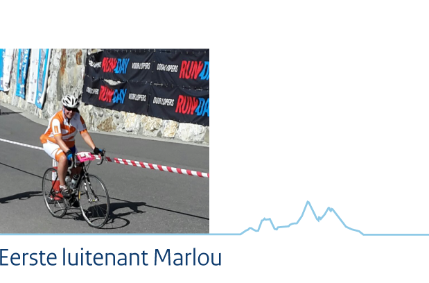 “Omdat ik al aardig wat kilometers in de benen heb, koos ik ervoor om de Stelvio hardlopend te bedwingen. Eenmaal aangekomen in Bormio schrok ik toch wel van wat ik zag. Het zag er namelijk wel erg steil uit. Ik dacht nog: 'Misschien had ik wat vaker een heuvel mee moeten pakken in Nederland'. Maar ook al had ik dat gedaan dan was het niets vergeleken met wat ik zag. Maar zoals het op mijn shirt stond gedrukt: 'Koninklijke Marechaussee, als het erop aan komt' liet ik me niet uit het veld slaan. Vol moed ging ik richting de start. De sfeer zat er goed in. We wensten elkaar succes en gingen van start.