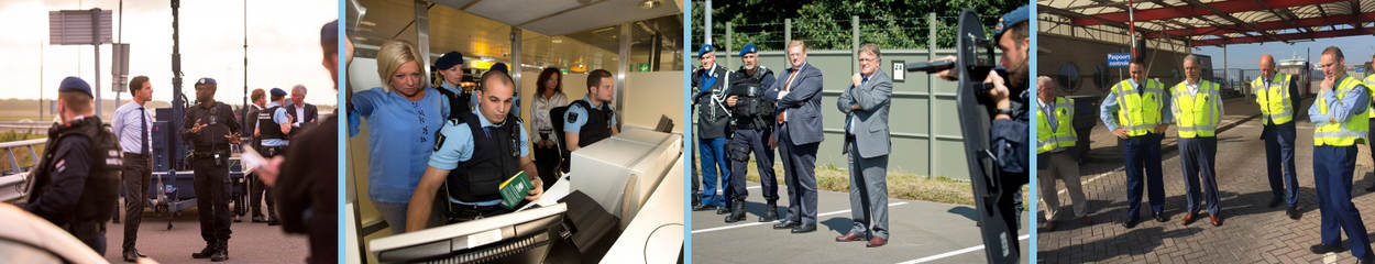 Rutte en Hennis-Plasschaert namen tijdens hun bezoek onder andere plaats in een paspoortbalie om paspoorten te controleren. Ook keken ze mee bij één van de controleposten op de toegangswegen naar Schiphol en werden ze bijgepraat over de laatste ontwikkelingen bij de KMar. Van der Steur en Riedstra bezochten de Brigade Speciale Beveiligingsopdrachten en het eskadron Hoog Risico Beveiliging. Burgemeester Aboutaleb werd geïnformeerd over het takenpakket op de maritieme grensdoorlaatpost. Daarnaast kwam de intensivering van de grenscontroles en de inzet van de migratiehonden aan bod.