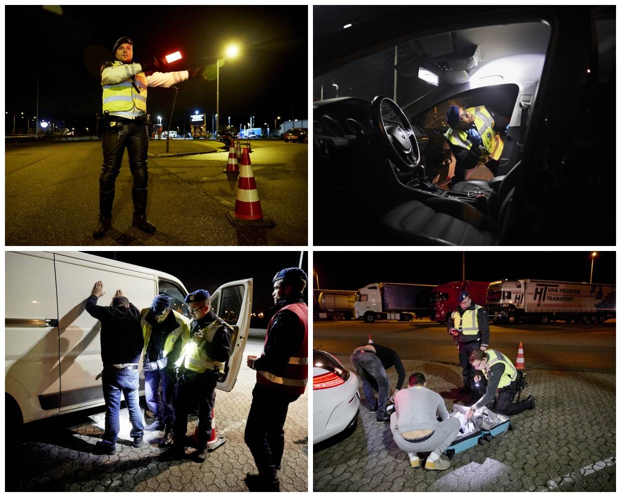 Terwijl het kwik tot rond het vriespunt daalt en de wind in het gezicht snijdt, worden voertuigen met uiterste precisie gecontroleerd: onder matten, in kiertjes, kastjes en vakjes. In mobiele administratiecentra (MAC-bussen) worden interessante personen nader onderzocht en hun documenten gecontroleerd. Sommige automobilisten kunnen na enkele minuten door, anderen staan zomaar een uur stil.