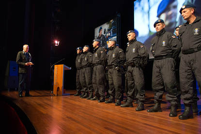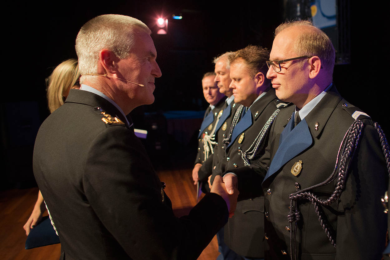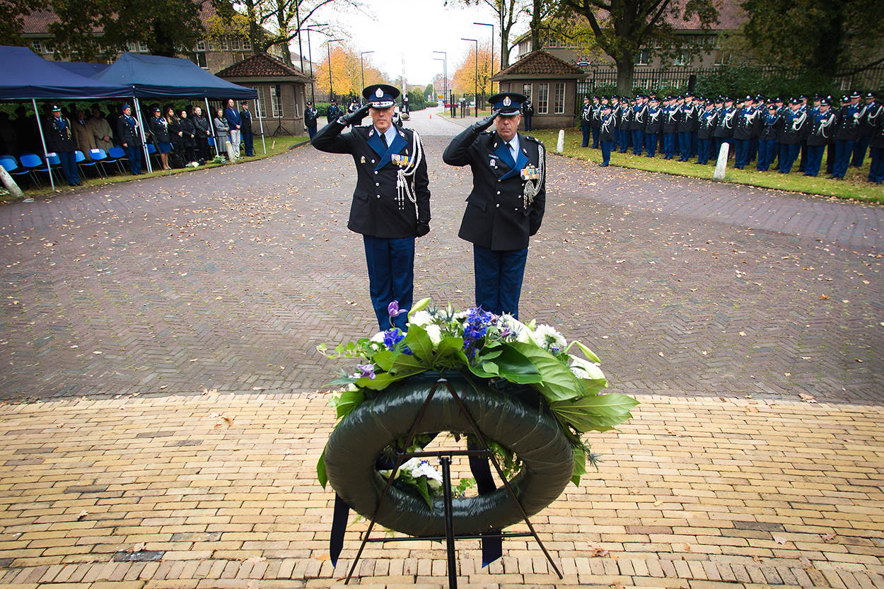 Zo kregen de familierechercheurs een groepswaarderingsspeld, voor hun bijzondere dienstverrichting tijdens de inzet na de ramp met MH17. De Bijstandseenheid (BE) werd in het zonnetje gezet, omdat ze tussen februari 2015 en september 2016 een groot aantal objecten met een hoog risicoprofiel heeft beveiligd. Traditiegetrouw werd 's ochtends voor de poort van het Opleidings-, Trainings- en Kenniscentrum in het bijzijn van familie en collega's een krans gelegd en stilgestaan bij collega's die afgelopen jaar zijn overleden.