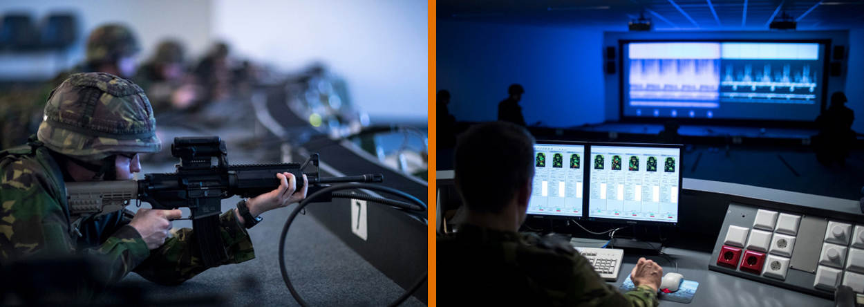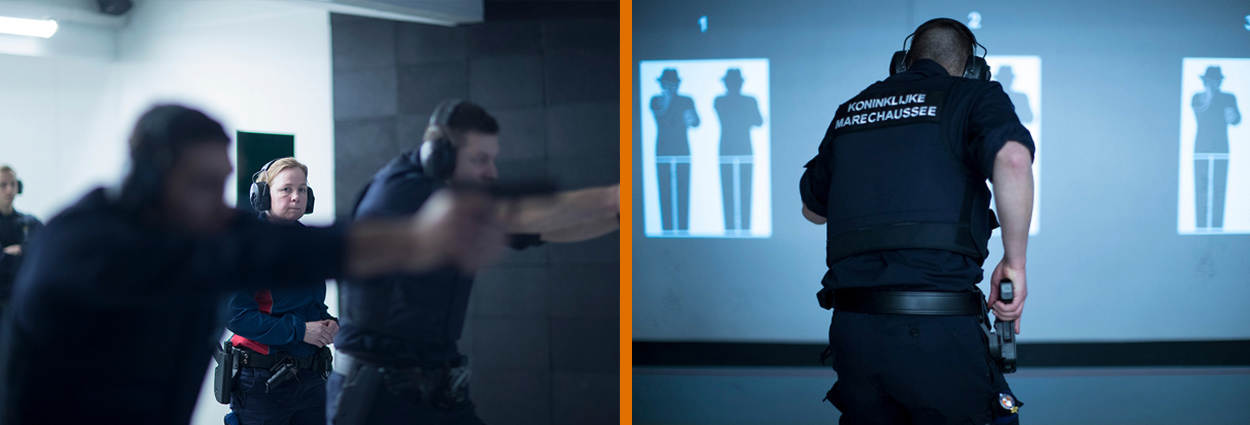 Zowel de Koning Willem III-kazerne in Apeldoorn als de Koningin Máximakazerne op een steenworp afstand van Schiphol, is 2 gloednieuwe schietfaciliteiten rijker. KMar-collega's en leerlingen schieten in een ultramoderne omgeving, omringd door hightech apparatuur. Zo heeft de schietschijf hier plaatsgemaakt voor projecties en met simulatoren en haarscherpe video's worden situaties levensecht nagespeeld.