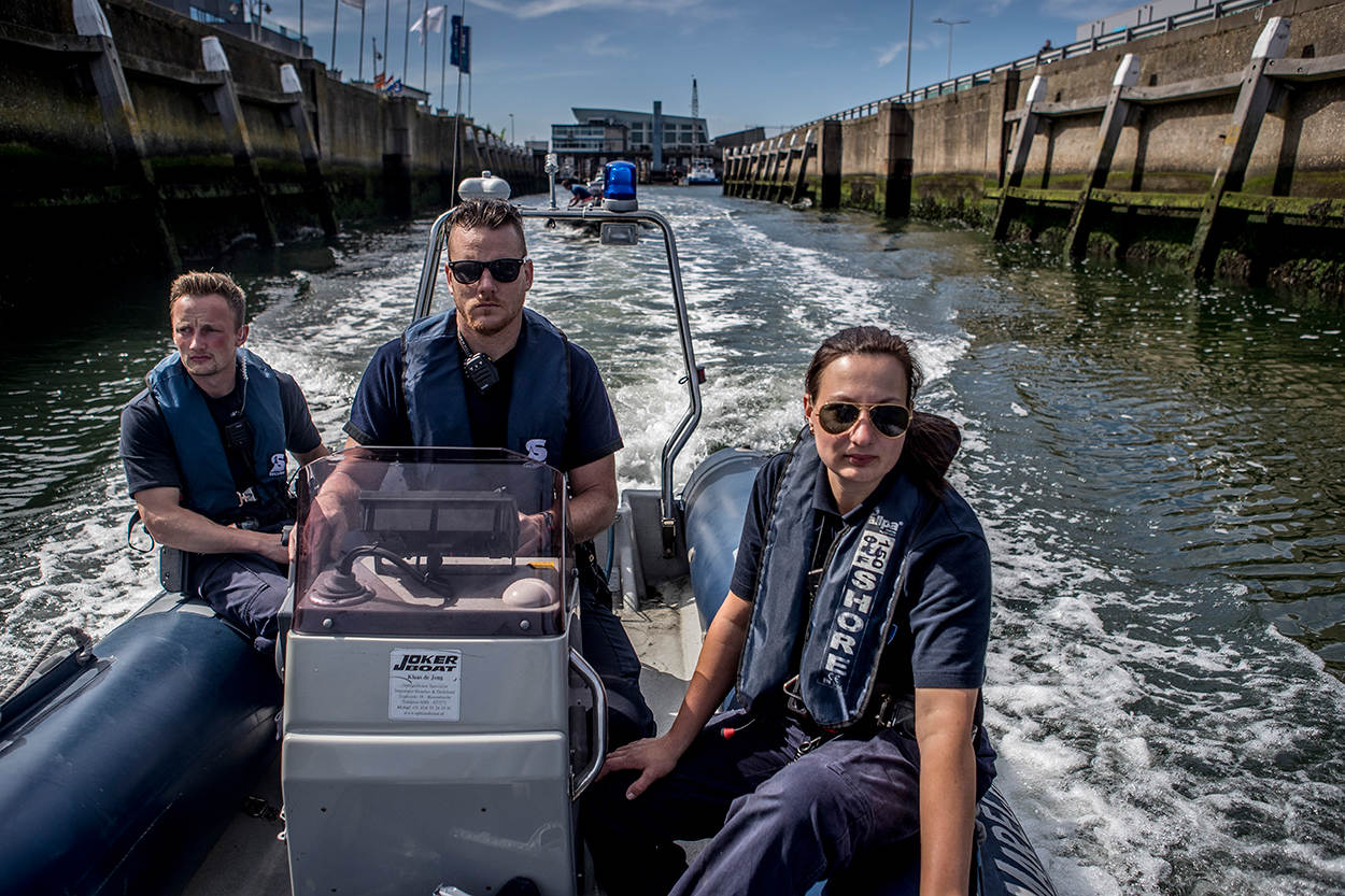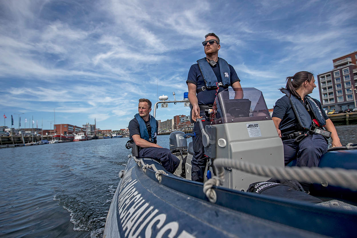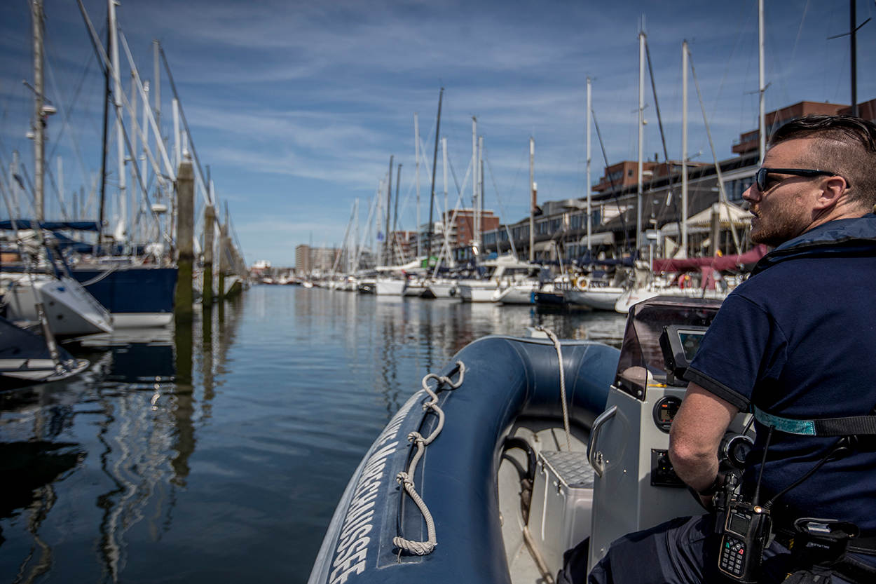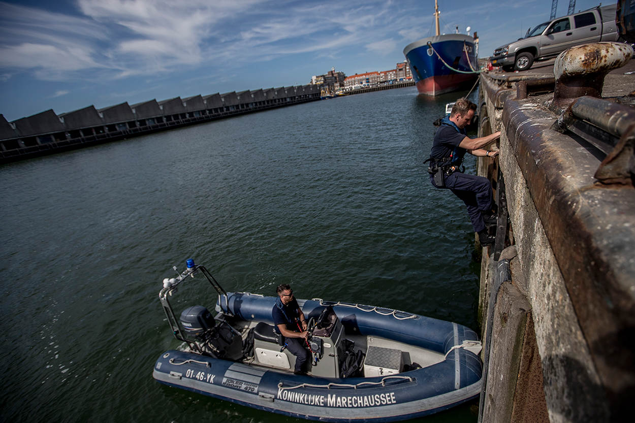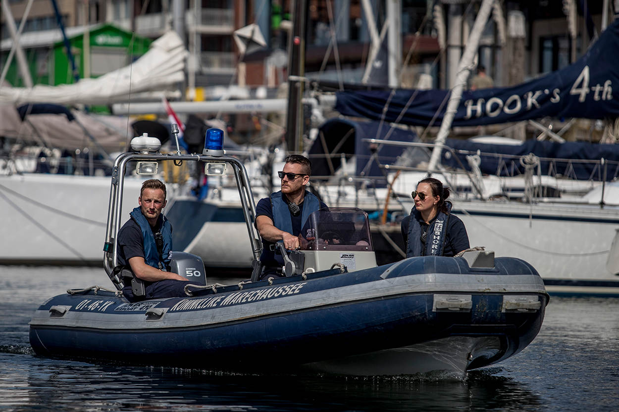 De media hebben de afgelopen maanden veel aandacht besteed aan de migratieproblematiek bij de maritieme doorlaatposten. Met name Hoek van Holland en IJmuiden stonden in de schijnwerpers. Hoewel het zwaartepunt van het werk daar ook ligt, verliest de Koninklijke Marechaussee de andere havens niet uit het oog. Onlangs onderwierp een team van de brigade Zuid-Holland de plezier- en beroepsvaart in de havens van Dordrecht, Moerdijk en Scheveningen aan een uitvoerige controle. Landinwaarts langs de kustlijn en in de havens werd ook met voertuigen gepatrouilleerd.