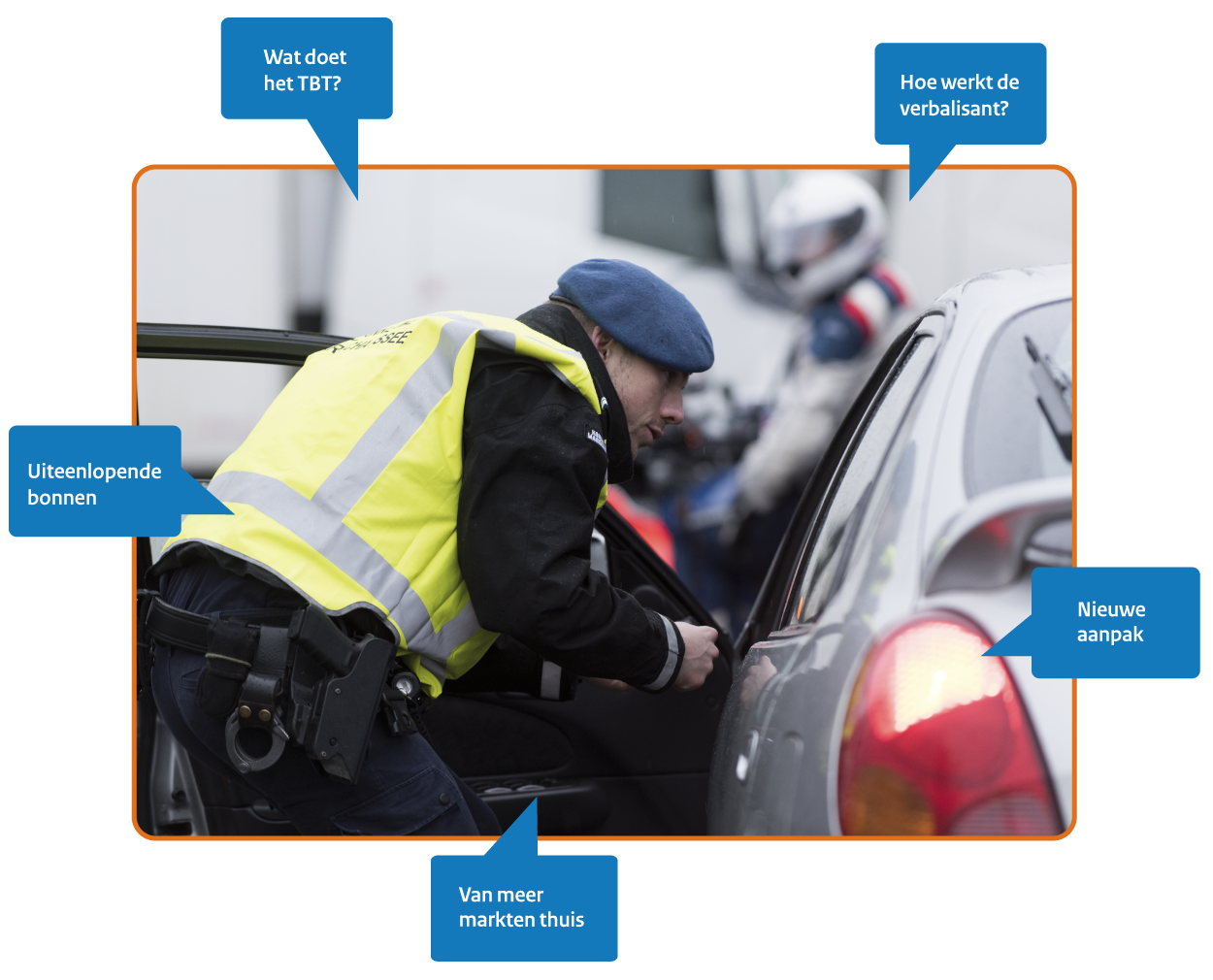 Als ‘onbekend maakt onbemind’ voor één marechaussee-onderdeel geldt, dan is het wel het Team Buitenrechtelijke Taken (TBT) in Uddel. “Veel mensen weten niet wat de afkorting betekent en wat wij doen. Ze hebben iets gehoord over bonnen, maar hoe het precies zit? Dat weten weinigen. Sommigen spreken gekscherend van Team Buitenechtelijke Taken. Ik begrijp die onbekendheid wel. Het TBT bestaat pas sinds 2014”, zegt coördinator Gerrit.