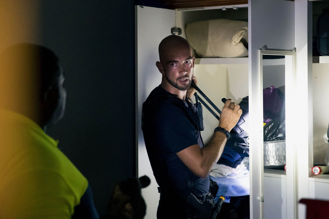 Een fotograaf van KMarMagazine trok een avond op met de marechaussees op Sint-Maarten om hun werkzaamheden te belichten. De KMar ondersteunde het Korps Politie Sint-Maarten (KPSM) onder meer bij een arrestatie, bij een inbeslagname van geplunderde goederen en bij de opsporing van betrokkenen bij een vechtpartij.