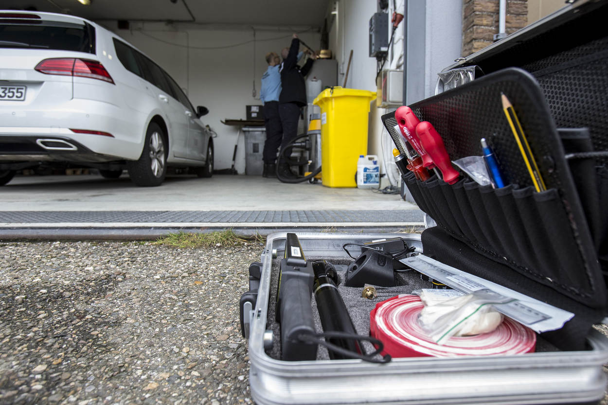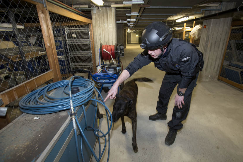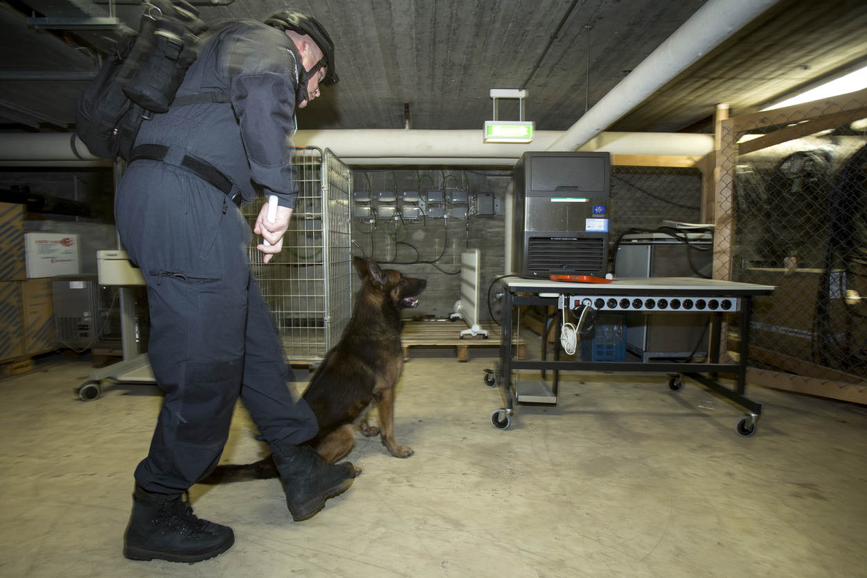 Ook de garage ondergaat een grondige inspectie. De 'explosieven' zijn op de gekste plaatsen verstopt, zoals in een ijsmachine. Dan komen de explosievenhonden heel goed van pas. Binnen de kortste keren pakken ze de geur op en gaan erop af.