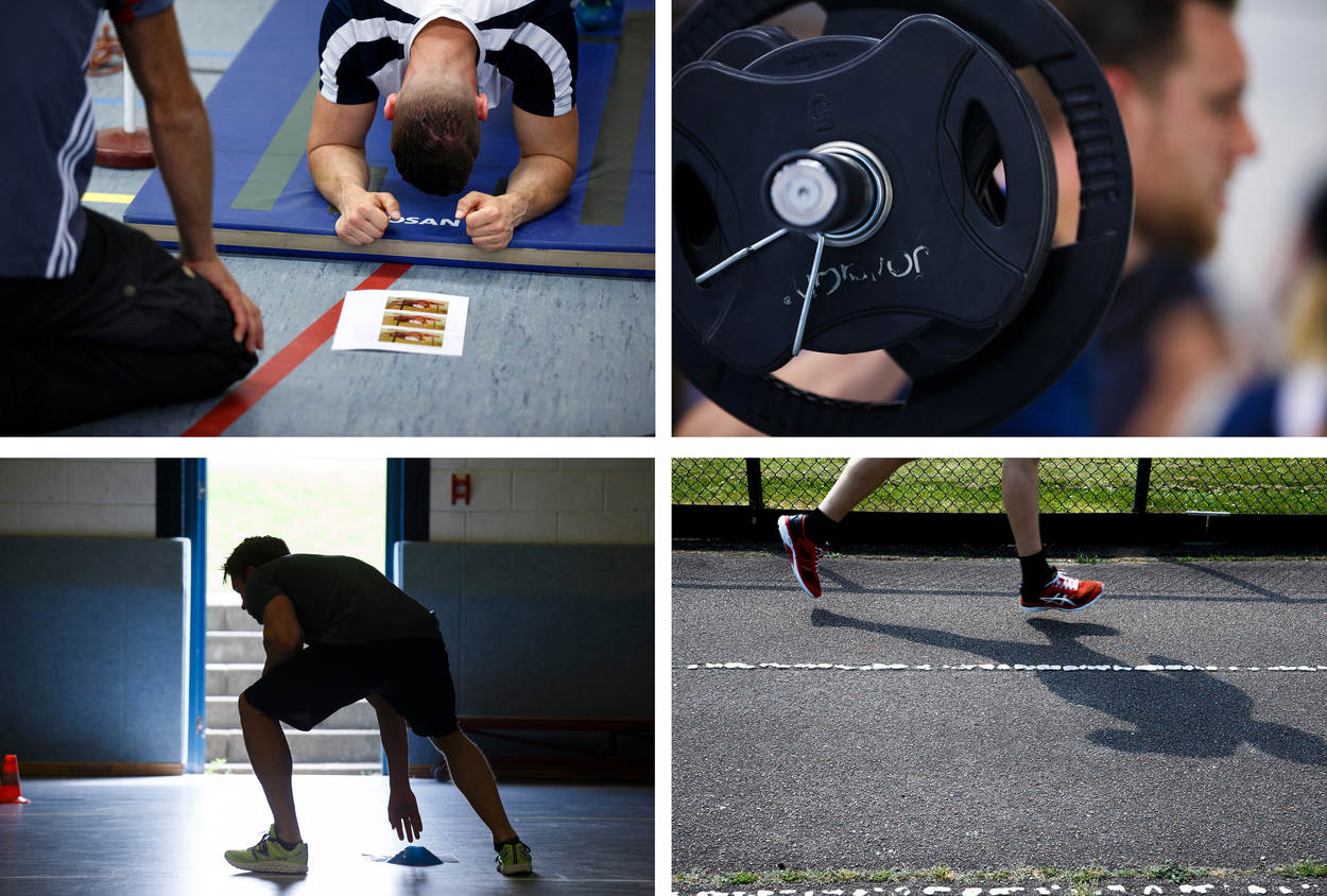 In de middag is het tijd om de benen te strekken. Het geheel verplaatst zich naar de nabijgelegen Bernhardkazerne in Amersfoort voor een sporttest. Het gaat om een nulmeting, zodat de belangstellenden weten waar ze staan. “Deze meting is voor jullie zelf”, benadrukt de organisatie. “Binnenkort krijgen jullie de uitslag, zodat jullie zelf weten waar mogelijk nog verbetering nodig is.”