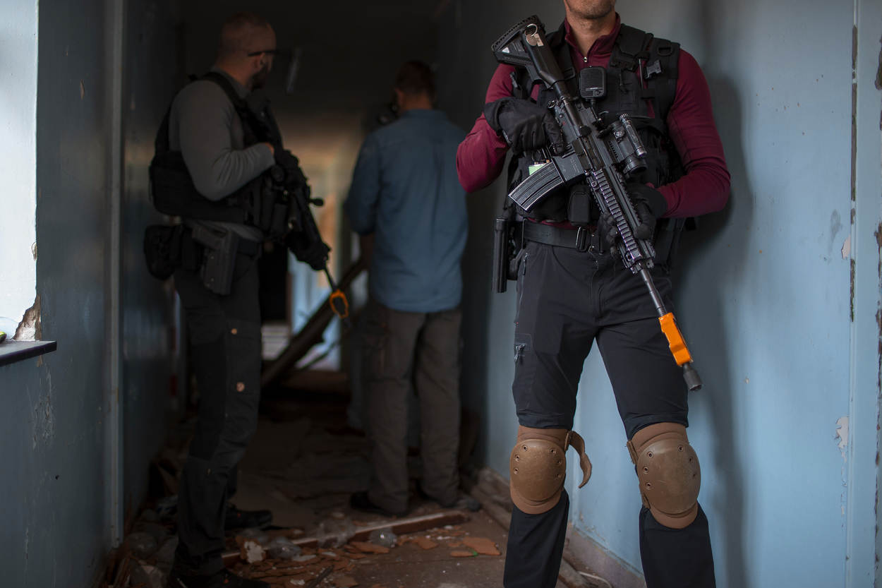 In Weeze wordt er daarom 3 weken keihard getraind op internationale inzet. En dat is toch net even anders dan persoonsbeveiliging in Nederland. Niet alleen wordt er over de grens met andere wapens (lang versus kort) en outfits (militair versus net pak) gewerkt, ook op het gebied van wetgeving en politiek is het even schakelen. Hoe gedraag je je bijvoorbeeld tegenover een buitenlandse diplomaat? En wat kunnen jouw acties voor gevolgen hebben voor de geopolitiek?
