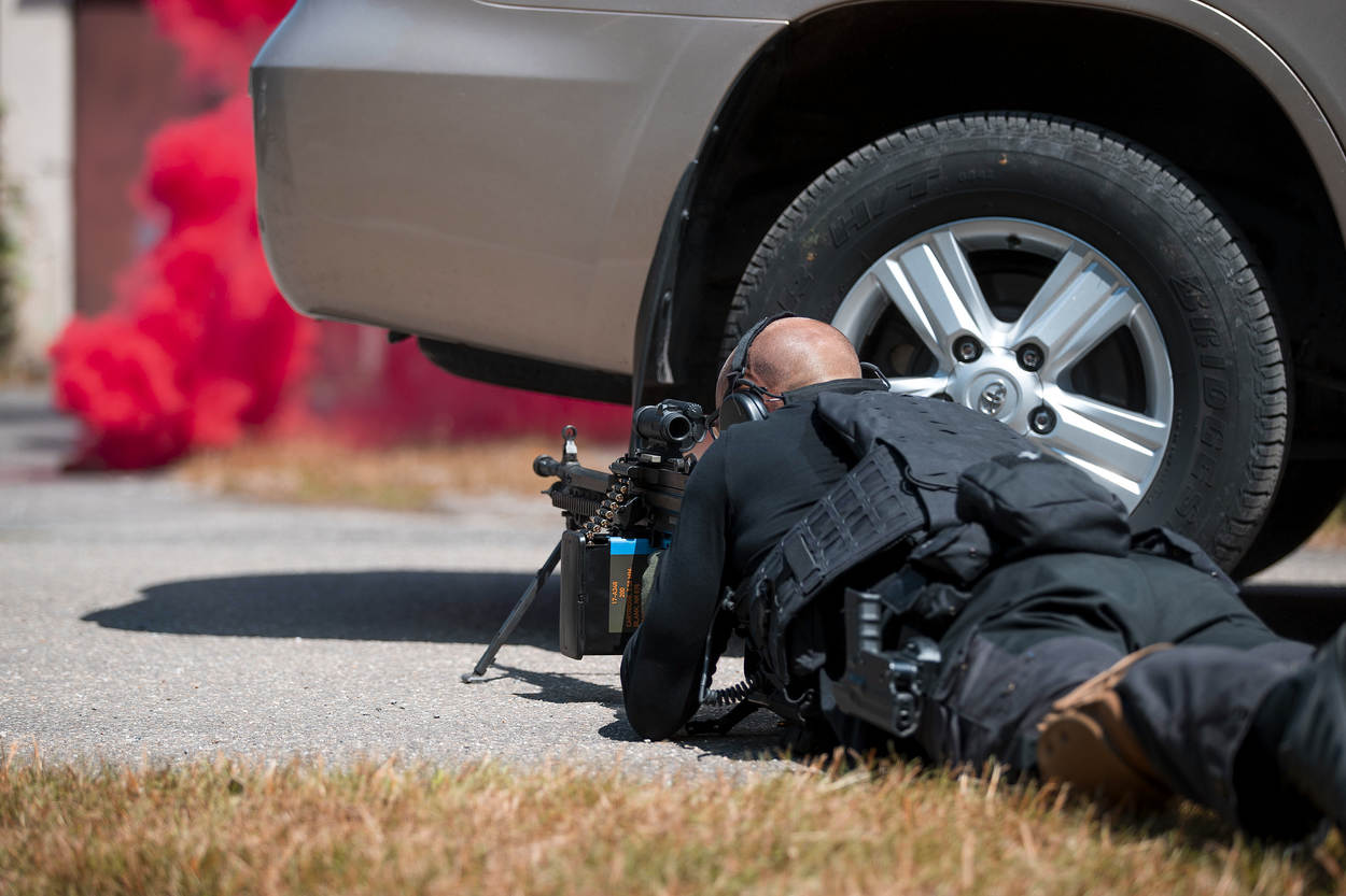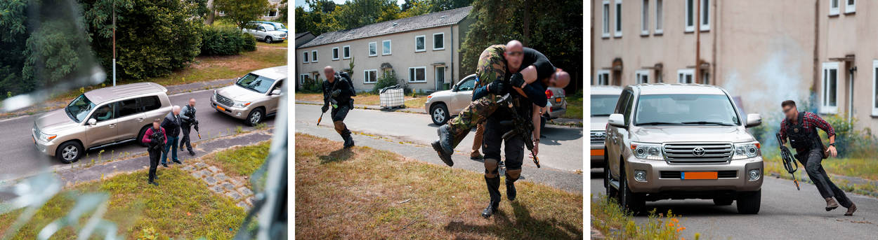 Zo snel als de gepantserde wagen wegstoof, duikt hij ook weer op. VIP Stan stapt heelhuids uit, geflankeerd door Stephan en diens teamgenoten. De gespannen blikken, zweetdruppels en kloppende aders lijken als sneeuw voor de zon verdwenen. Opluchting overheerst: de BSB-operators in spé hebben door pijlsnel handelen kunnen voorkomen dat Stan iets zou overkomen. Oefening geslaagd.