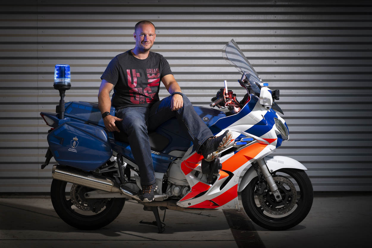 De reis naar waar Wouter Bakker nu is, was ook een lange weg. Die januaridag in 2016 was eigenlijk niet bijzonder. Bakker, motorrijder binnen de politiedienst op Schiphol, gaat af op een melding. Een man dreigt in een bus bij de luchthaven dat hij een wapen heeft. In een bocht maakt de wachtmeester een verkeerde inschatting, schiet over een plas water en klapt op een betonnen duiker. De motor sleurt de marechaussee aan zijn enkel mee en hij klapt ook nog eens met zijn buik op het stuur. De wachtmeester heeft het geluk dat er collega's vlak achter hem rijden en een traumahelikopter razendsnel bij het ongeval landt. Want de enkel is nog het minste probleem, interne verwondingen baren meer zorgen. “Ik weet er weinig meer van, ik kwam pas bij in het ziekenhuis.”