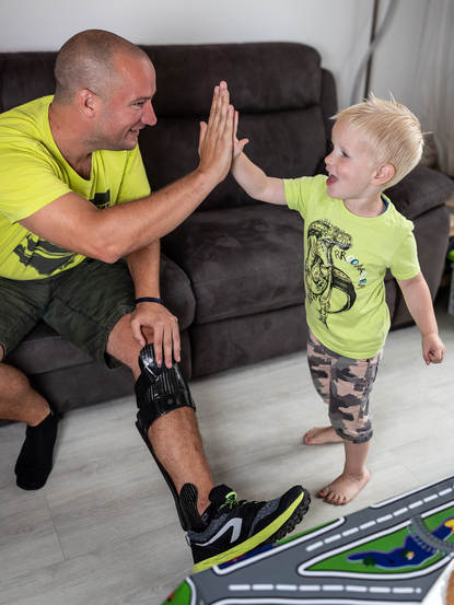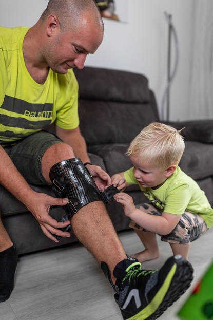 Of hij is veranderd na het dienstongeval? “Ja”, vindt Michelle. “Hij kon eerst moeilijk omgaan met de beperkingen die zijn enkel veroorzaken. Hij was actief en voor zijn werk altijd op straat. Dan kun je je wel voorstellen dat iemand even een kort lontje krijgt als hij de hele dag op de bank moet zitten.” Wouter draait dat nu om naar iets positiefs. “Omdat ik zoveel thuis ben geweest, heb ik onze zoon Sem van heel dichtbij zien opgroeien.” De brace, zijn plezier in het werk, het traject naar de Invictus Games en niet te vergeten een stabiel thuisfront maken het leven van Wouter Bakker zeker geen straf. “En dan nu ook de Invictus Games. Ik ga daar echt van genieten. Behalve bij wielrennen en zitvolleybal (Wouter is benoemd tot aanvoerder), kom ik uit bij boogschieten. Het kwam zo uit in het schema dat ik daaraan kan meedoen. Niet dat ik enige kans maak op een medaille, maar daar gaat het ook helemaal niet om bij de Invictus Games.”