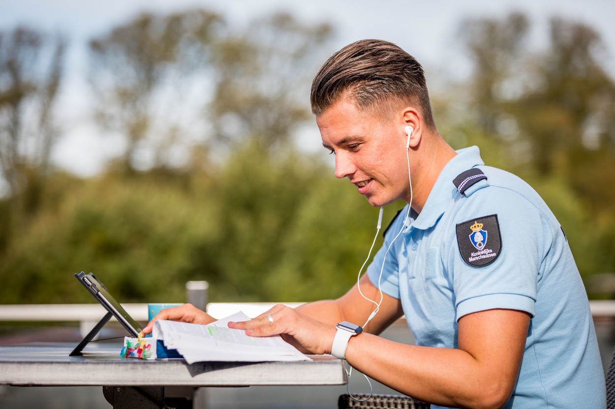 Tijdens een werkpauze of lekker thuis op de bank de lesstof van de Leergang Algemeen Opsporingsambtenaar (LAO) bestuderen. In je éigen tijd en wanneer het jóu goed uitkomt. Voor 15 marechaussees van Den Haag Beveiliging is dit sinds 1 mei de realiteit. Zij nemen deel aan de deeltijdpilot van de LAO-opleiding, die via de digitale leeromgeving wordt gegeven. Dat bevalt goed, vertellen enkele betrokkenen.