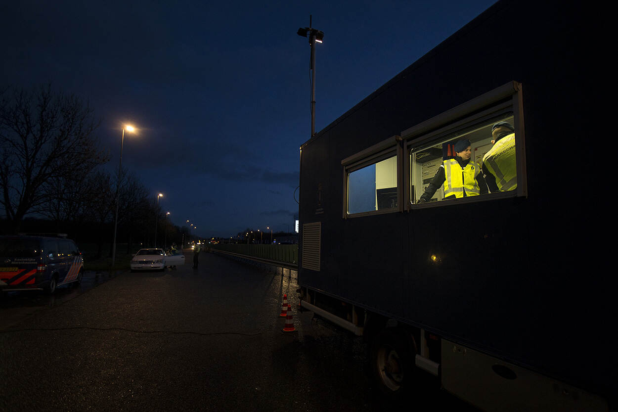 De Mobiel Toezicht Veiligheid-controles (MTV) van de Brigade Oostgrens-Midden worden bijna weer op volle sterkte uitgevoerd. De afgelopen 2 jaar werden veel collega’s tijdelijk tewerkgesteld op Schiphol, Eindhoven en Venlo. Sinds eind vorig jaar zit de brigade weer breder in z’n capaciteit. Op een winterse donderdagavond controleren ze langs de A12, vlakbij de Duitse grens. “Ik ben blij dat er weer een aardige ploeg op de controlelocaties staat.”