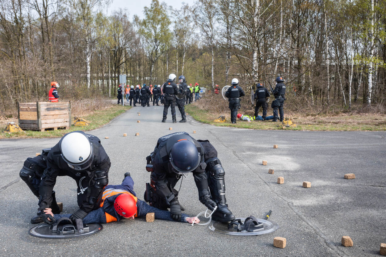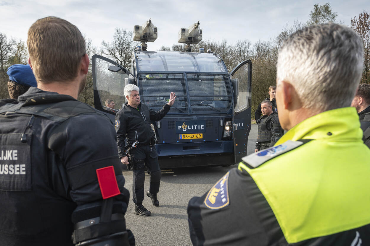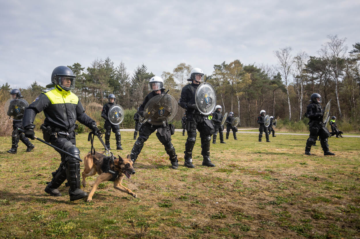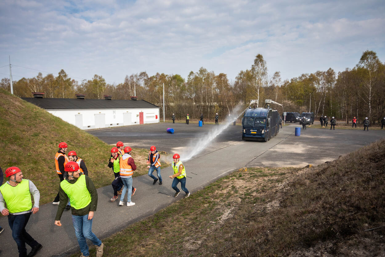 De collega’s, die zich op dit moment onderdompelen in de wereld van de BE, oefenden vorige week voor het eerst samen met de politie. Daarbij maakten zij kennis met de waterwerper van de ME en politiepaarden en -honden. Ook stonden ze, sommigen voor het eerst, tegenover grote groepen ‘demonstranten’.