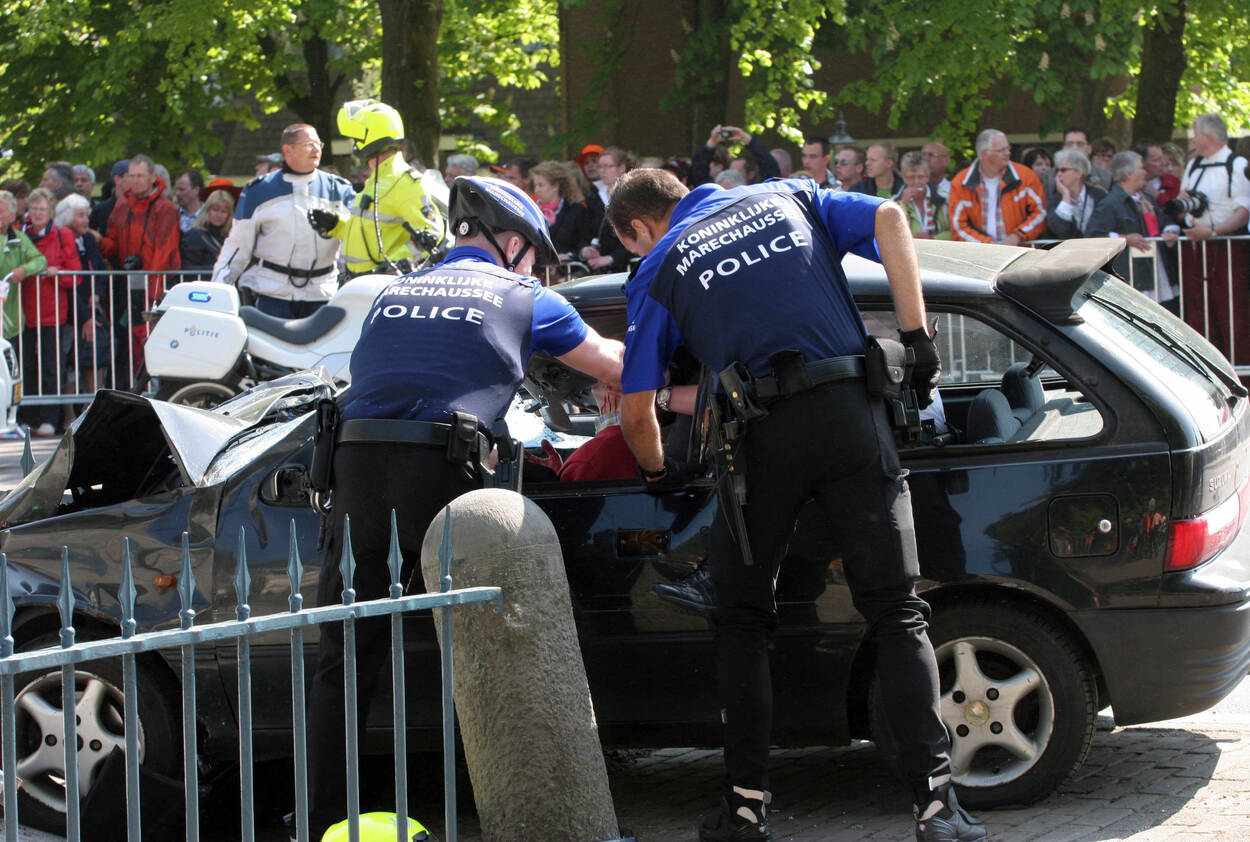 Dimitry stond er al. De man achter het stuur zat klem, was gewond en brabbelde onduidelijke dingen. Ik heb EHBO toegepast. Via het achterraam pakte ik zijn hoofd om dit te stabiliseren. Ondertussen hield ik hem scherp in de gaten, wat doet ‘ie met zijn handen? Ik was me nog steeds bewust van een mogelijke dreiging, wie weet zat er ergens een knop voor explosieven. We probeerden zo snel mogelijk de waarheid te achterhalen. De bestuurder bevestigde dat het een bewuste aanslag was en daarop hebben we hem aangehouden.