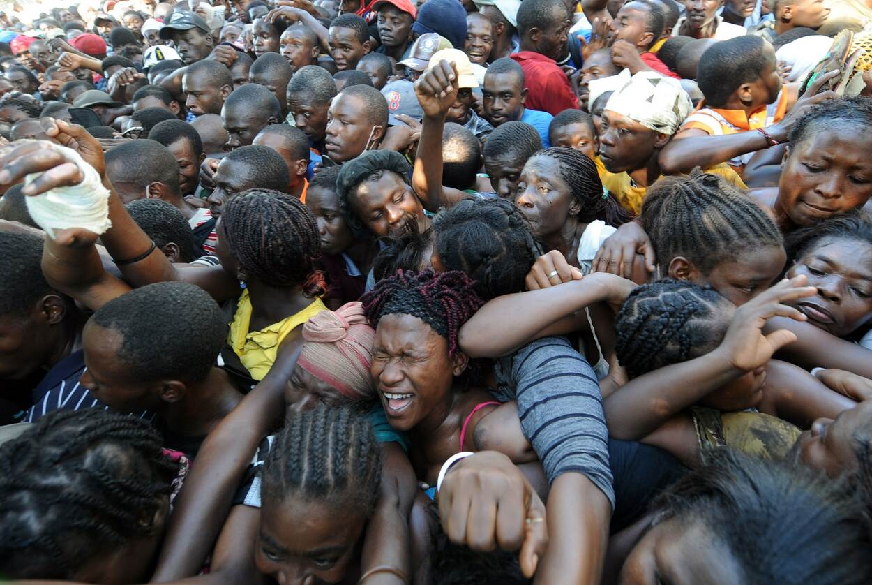 De voedselpakketten waren al uitgeladen, maar we konden de toegang niet openen, de mensen waren niet te houden geweest. Tegelijkertijd leken de hekken het ook niet lang meer te houden. Ik zag de wanhoop op de gezichten van de mariniers die er alles aan deden om de hekken tegen te houden. En dan sta je voor de vraag: hoe komen we hier levend uit?