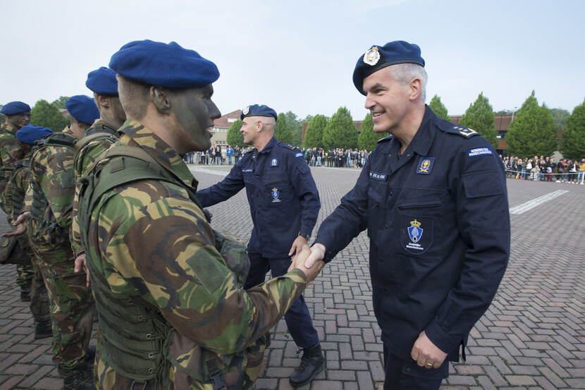 CKMar feliciteert een nieuwe lichting marechaussees. Collega’s in alle lagen van de organisatie horen, stond hoog op de prioriteitenlijst van Van den Brink.