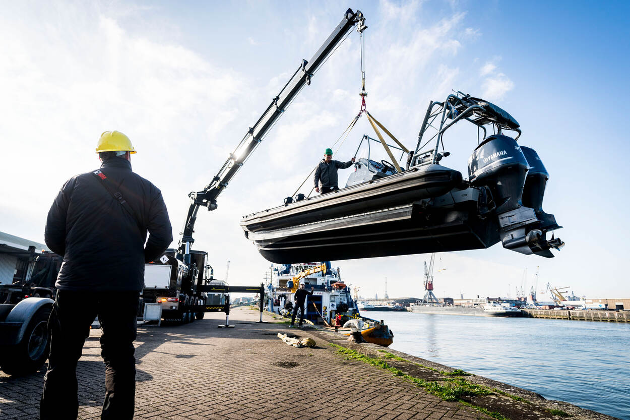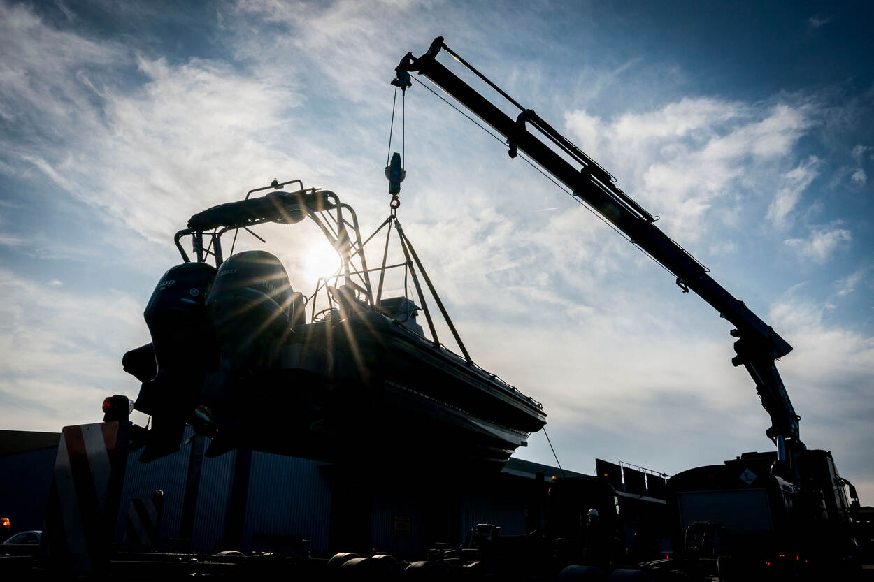 De BSB wordt ingezet wanneer snel en specialistisch optreden nodig is. Dan moet er dus adequaat gehandeld worden. “We moeten zo snel mogelijk inzetbaar zijn, ook op het water”, vertelt maritiem coördinator van de BSB Tom, terwijl achter hem de FH500 voor het eerst in actie komt en 2 van zijn RHIB’s binnen no time het water in takelt vanaf de meters hoge kade van het Rotterdamse Nieuw-Mathenesseterrein.