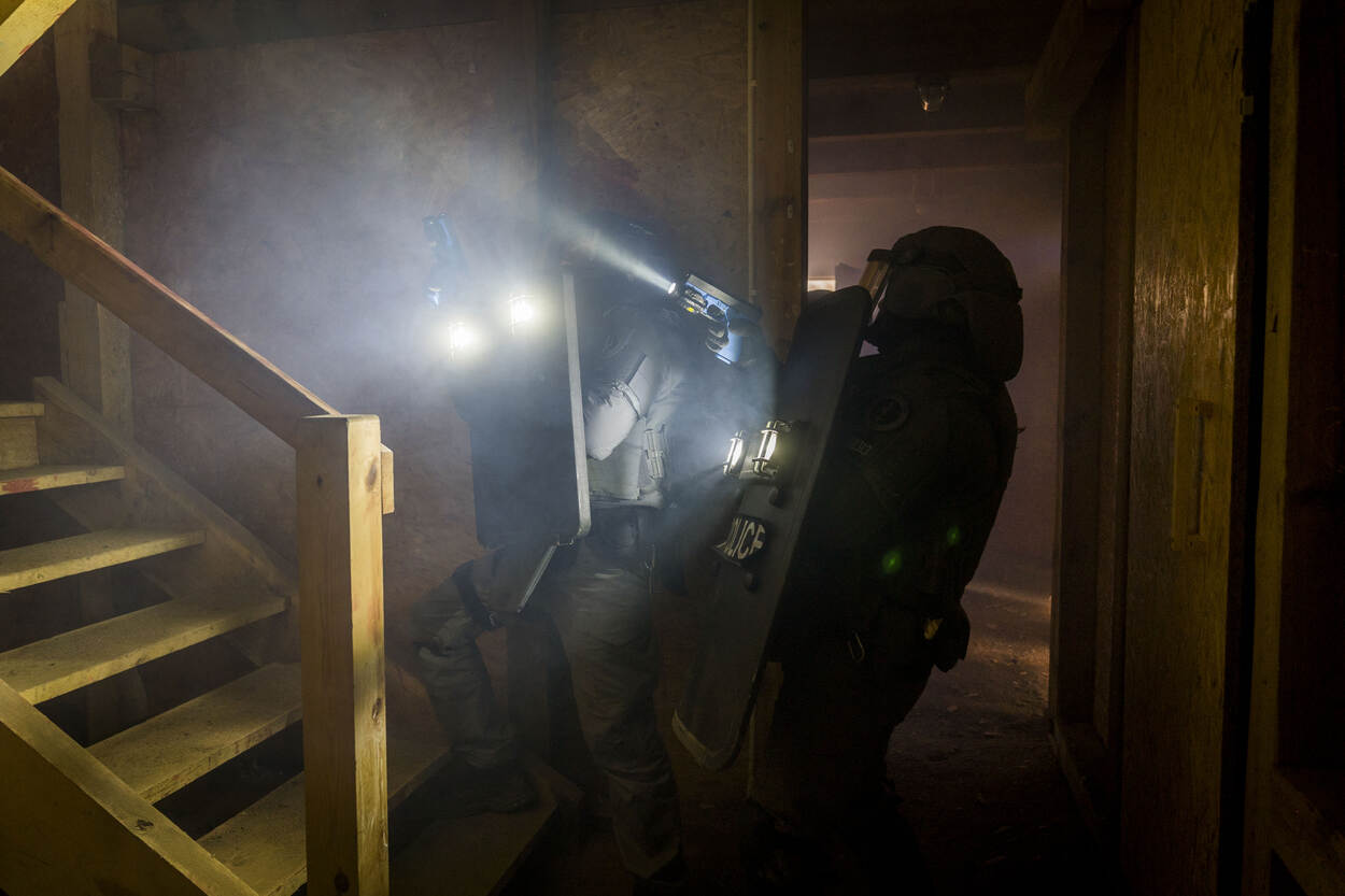 En als het dan zover is, gaan alle systemen aan. Ik zeg gedag en ga op pad. Het tijdstip waarop dat gebeurt is meestal ongelukkig, net als je zit te eten bijvoorbeeld. Gelukkig begrijpt mijn vrouw het, ik houd haar altijd op de hoogte. Tijdens een verplaatsing met spoed rijden we soms stevig door, maar daar zijn we gelukkig goed in getraind en opgeleid. Ik ben weleens beschoten, maar tot nu toe zijn alle acties goed verlopen. Criminelen weten vaak wel dat ze geen keuze hebben als wij binnenstormen."