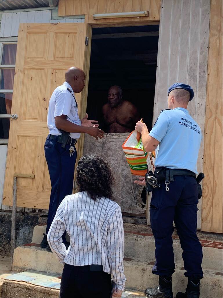 Vanwege COVID-19 delen KMar-collega's van de Brigade Caribisch gebied samen met het Korps Politie Curaçao voedselpakketten uit aan ouderen. Dit gebeurt in diverse woonwijken op het eiland.