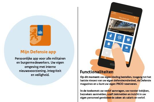 Behalve toegang tot KMarMagazine kun je via de app ‘Mijn Defensie’ ook uw persoonlijke defensieomgeving benaderen en met de optie ‘alle apps’ inrichten naar uw eigen voorkeur. Via de app valt het laatste nieuws van het eigen defensieonderdeel te raadplegen en zijn ook de overige defensiebladen te lezen. Ook is het mogelijk kleding te bestellen bij het KPU-bedrijf of een PNOD-voertuig te reserveren. Momenteel werkt JIVC ook aan de mogelijkheden om via de app verlof aan te vragen, een dienstrooster te bekijken, bezoekers aan te melden of je ziek te melden. Zaken als salaris en verlofoverzichten worden straks ook inzichtelijk.