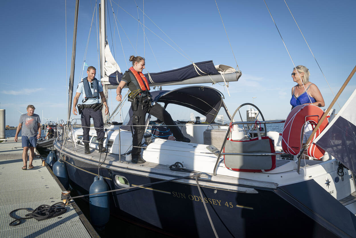 Na de controle krijgt een varend echtpaar de routebeschrijving naar het leukste haventje in de Oosterschelde.
