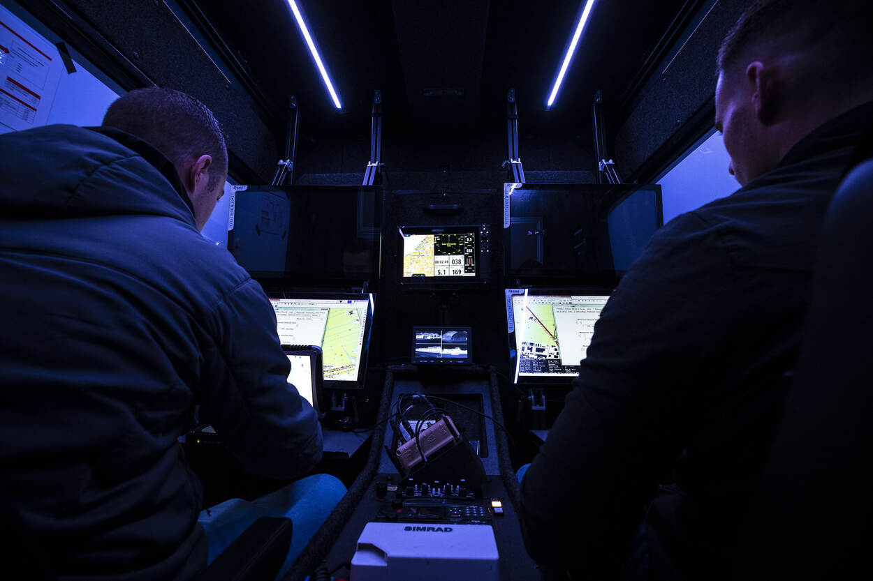 Besturen van de drones gebeurt vanuit een zelf ontworpen cockpitopstelling in een speciaal verbouwde bus. “Het vliegen springt het meest in het oog, terwijl je 80% van de tijd aan het voorbereiden bent”, vervolgt hij. “Maar ik vind dit werk echt een uitdaging en ik hoop ermee een bijdrage te leveren aan een KMar-brede ‘future ops’.”